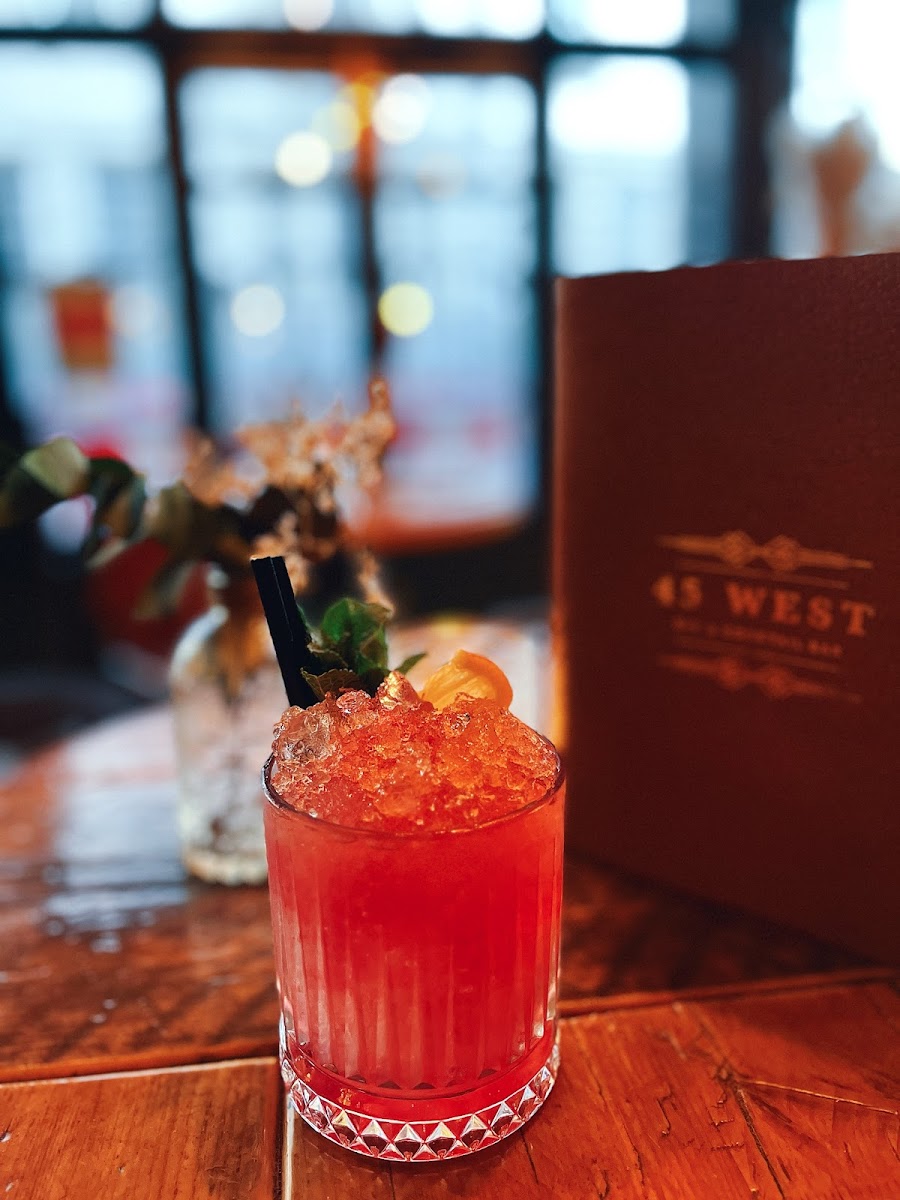 One of the main draws of 45 West Bottle Shop & Bar is its incredible drink selection. Whether you’re a fan of gin, whiskey, or something a little more adventurous, there’s something to suit every taste. For cocktail enthusiasts, the Gin Tonic, Martini, and English Garden Negroni are standout favorites. If you’re after something a bit more exotic, try the Watermelon Sugar High or the Smoked Pineapple Daiquiri, both of which bring unique flavors and vibrant colors to your glass.