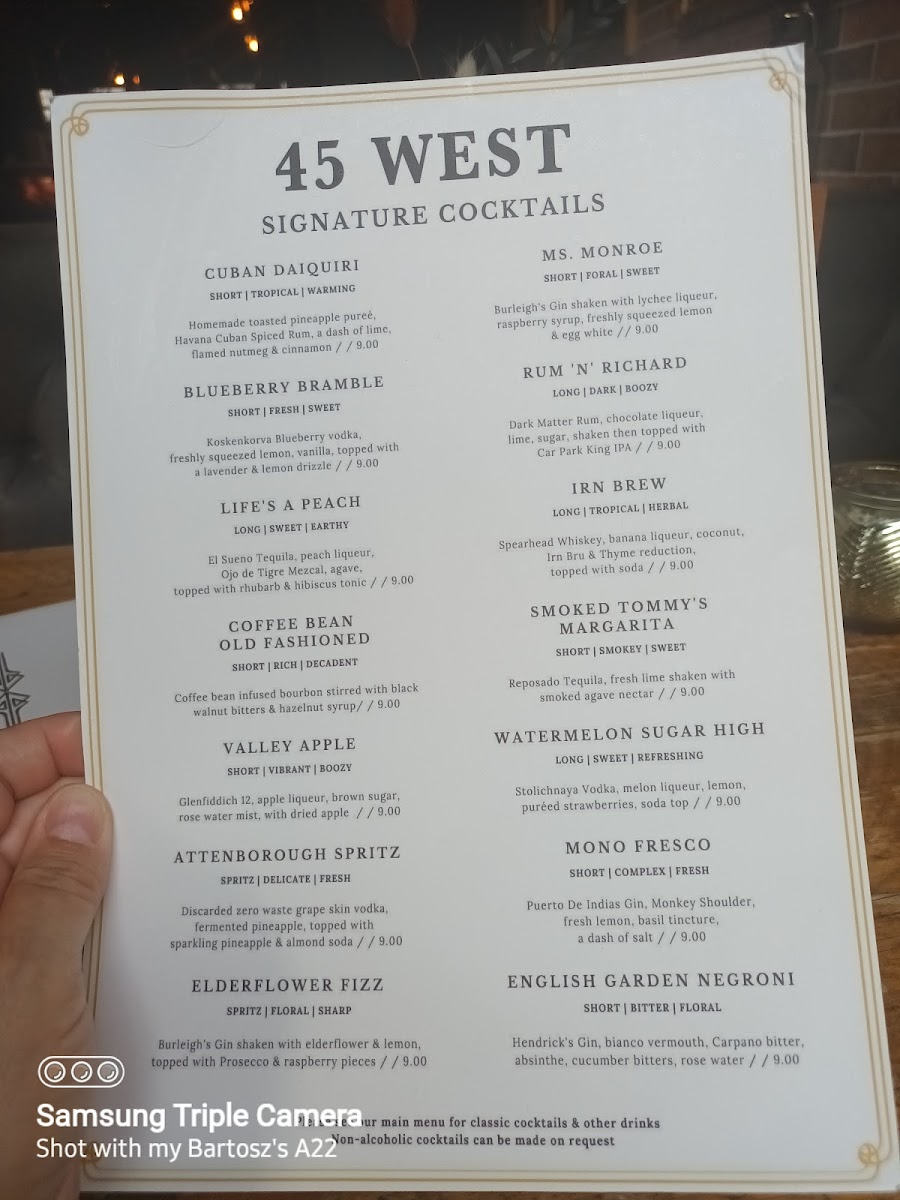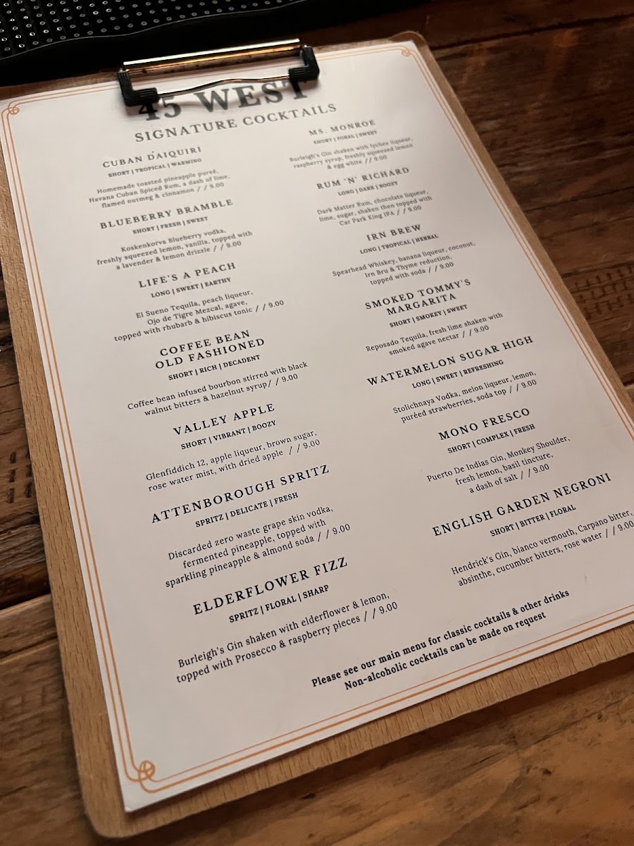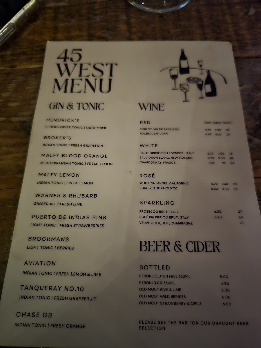 The ambiance at 45 West is cozy yet sophisticated, offering an intimate setting ideal for both quiet drinks and social gatherings. The location, nestled in the heart of Leicester, is easily accessible, making it a convenient stop for both locals and visitors.